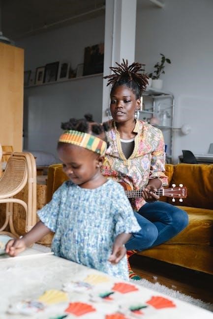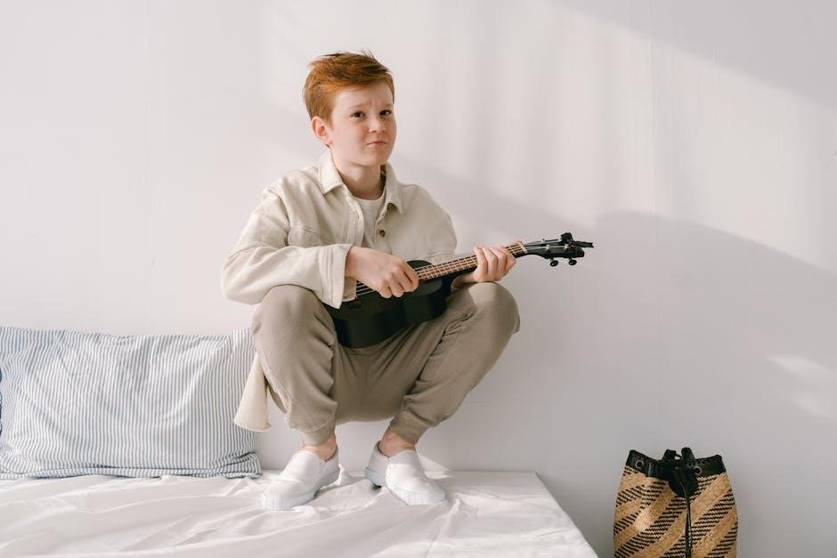 Many PDF guides recommend using a metronome to track your progress and maintain consistent timing. The goal is to achieve a smooth, continuous strumming motion without any hesitation or unevenness. This technique is foundational for playing faster-paced songs and adding energy to your ukulele performances.